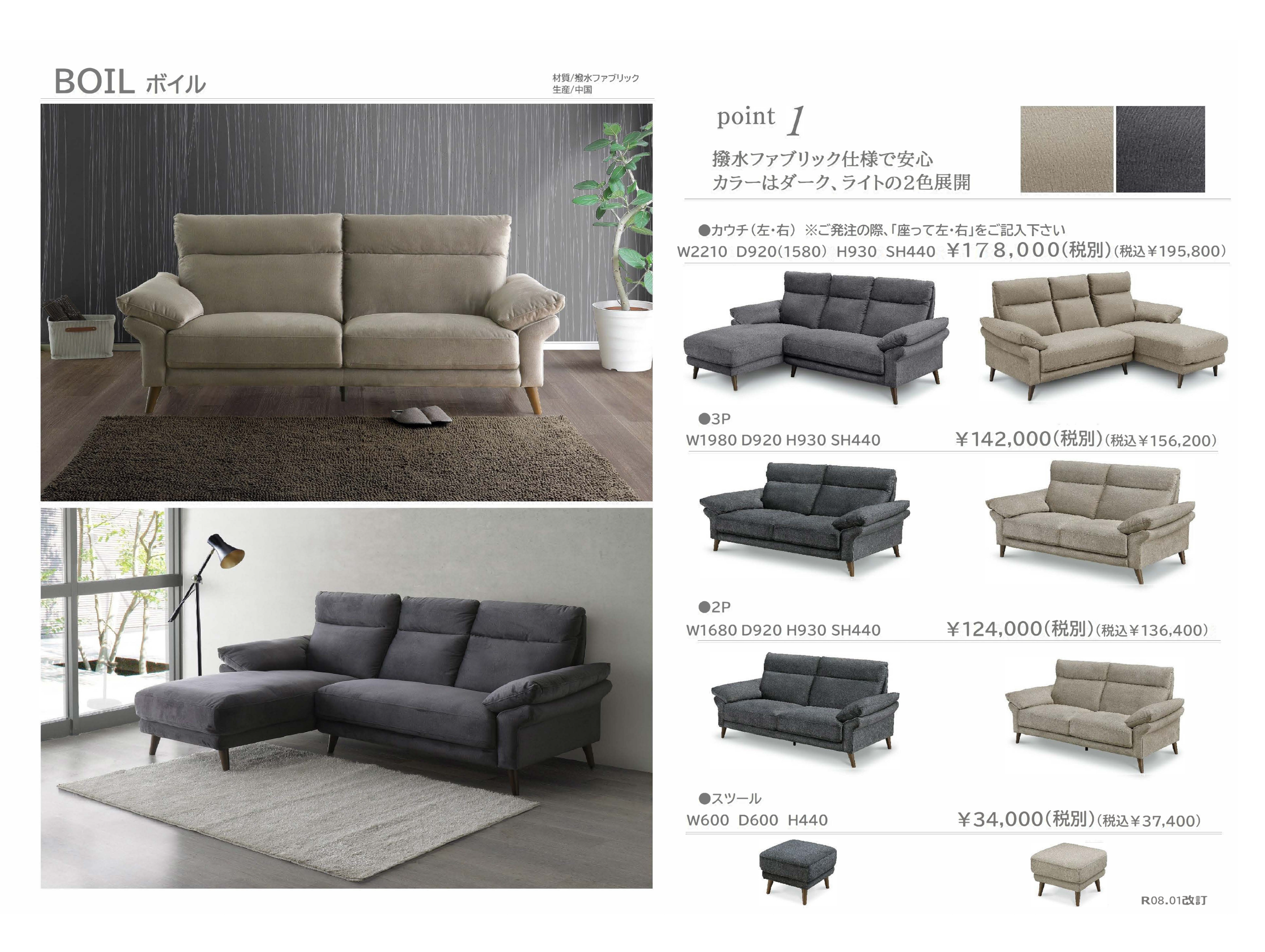 BOIL (ボイル) カウチ・2人掛け・3人掛けソファ+スツール ー 撥水機能で水や汚れに強い安心のファブリック-石巻の家具店LIFESTYLESHOP伊藤家具